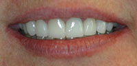 As you can see in the cosmetic dentistry shown below, a common problem is asymmetrical gum tissue. The gum tissue is oftentimes lower on one front tooth than the other, creating the appearance that one tooth is longer than the other. Porcelain Veneers look remarkably better when the tissue contour is correct.